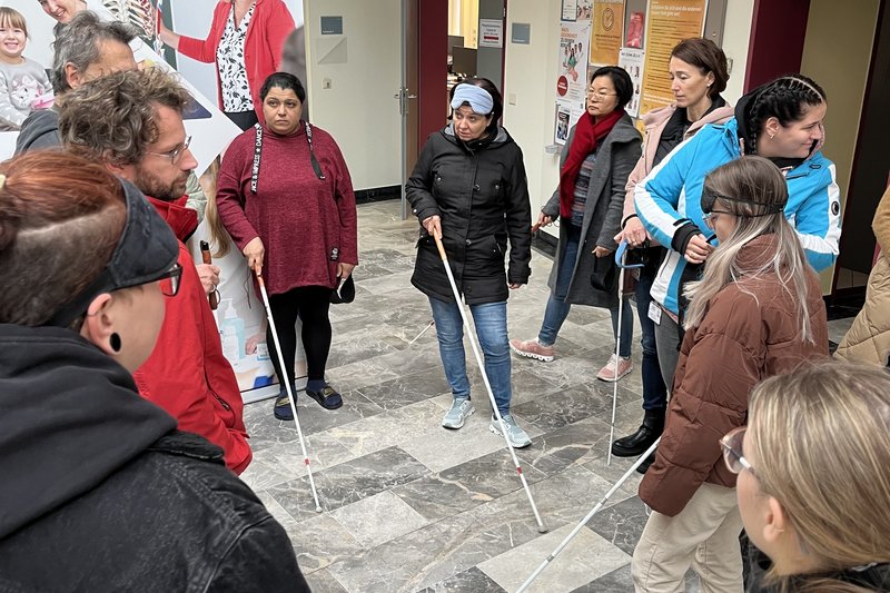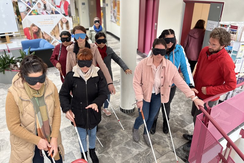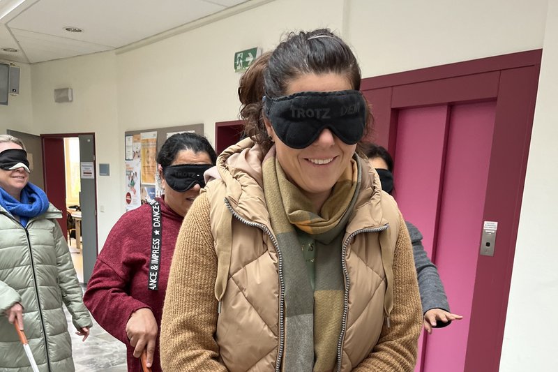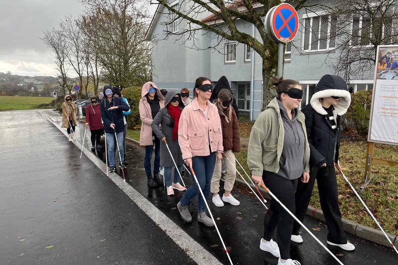 Behinderung erleben & verstehen: Die Auszubildenden erleben selbst, wie es ist, blind zu sein.