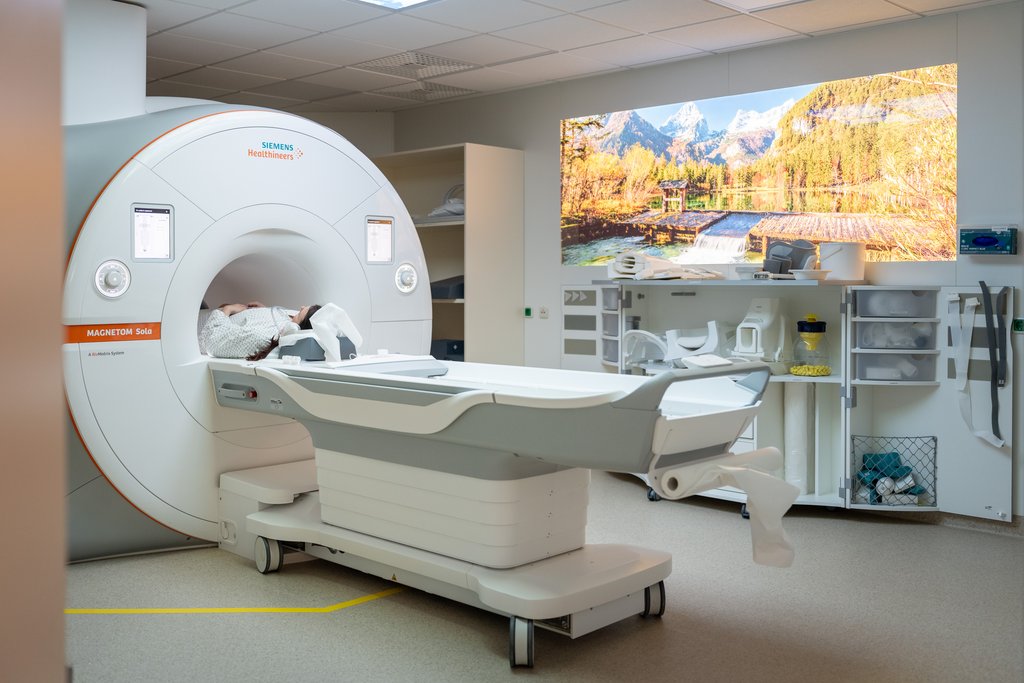 Die Magnetresonanztomographie (MRT) arbeitet mit starken Magnetfeldern und Radiowellen – vollständig ohne Röntgenstrahlung. Dadurch lassen sich hochauflösende Schnittbilder des menschlichen Körpers erzeugen, die eine besonders genaue Beurteilung von Organen, Gefäßen und Gewebe ermöglichen. Eingesetzt wird sie unter anderem für Gefäßuntersuchungen, etwa zur Darstellung der Becken- und Beinarterien bis in den Fußbereich oder der hirnversorgenden Arterien. Besonders wichtig ist diese Diagnostik bei der Früherkennung von Schlaganfällen, da für die Therapieplanung der zeitliche Faktor entscheidend ist. Weitere Anwendungsschwerpunkte liegen in der Onkologie und der Traumatologie. Die hohe Detailauflösung der Bilder ermöglicht in vielen Fällen eine schnellere und präzisere Diagnose und damit eine frühzeitigere Einleitung der passenden Behandlung.