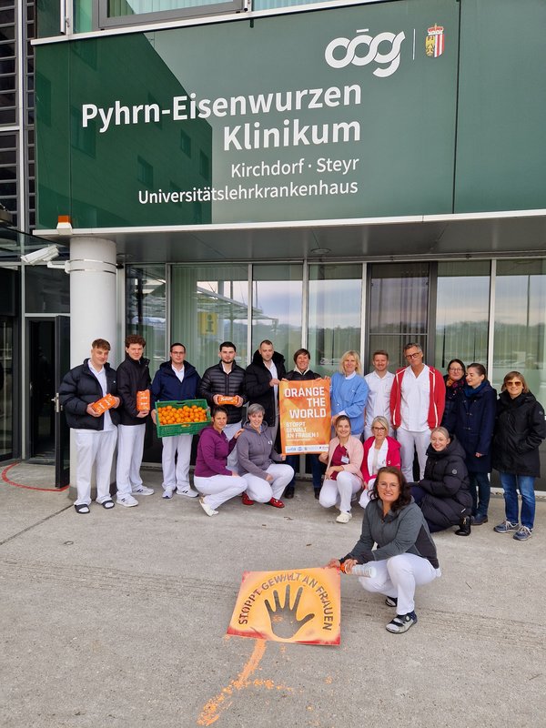 Das Pyhrn-Eisenwurzen Klinikum hat auch heuer mit eindrucksvollen Initiativen ein klares Signal gegen Gewalt an Frauen im Rahmen der Kampagne „Orange the World“, die von 25. November und noch bis 10. Dezember andauert, gesetzt. Im Mittelpunkt standen kreative und informative Aktionen an den Standorten Kirchdorf und Steyr, die gemeinsam mit engagierten PartnerInnen umgesetzt wurden.