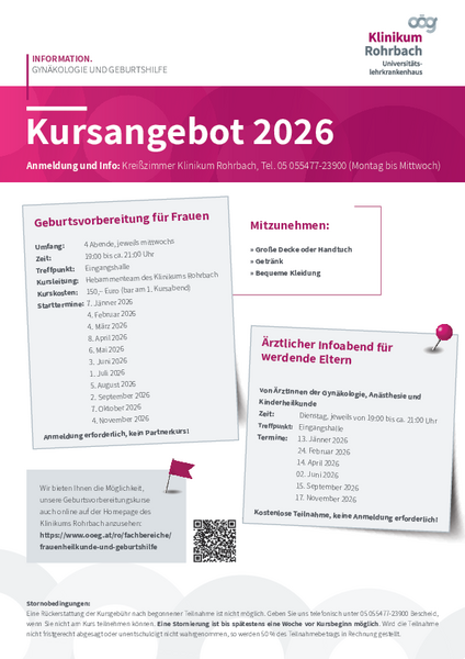 Es handelt sich um keinen Partnerkurs! Anmeldung und Info: Kreißzimmer Klinikum Rohrbach, Tel. 05 055477-23900 (Montag bis Mittwoch)