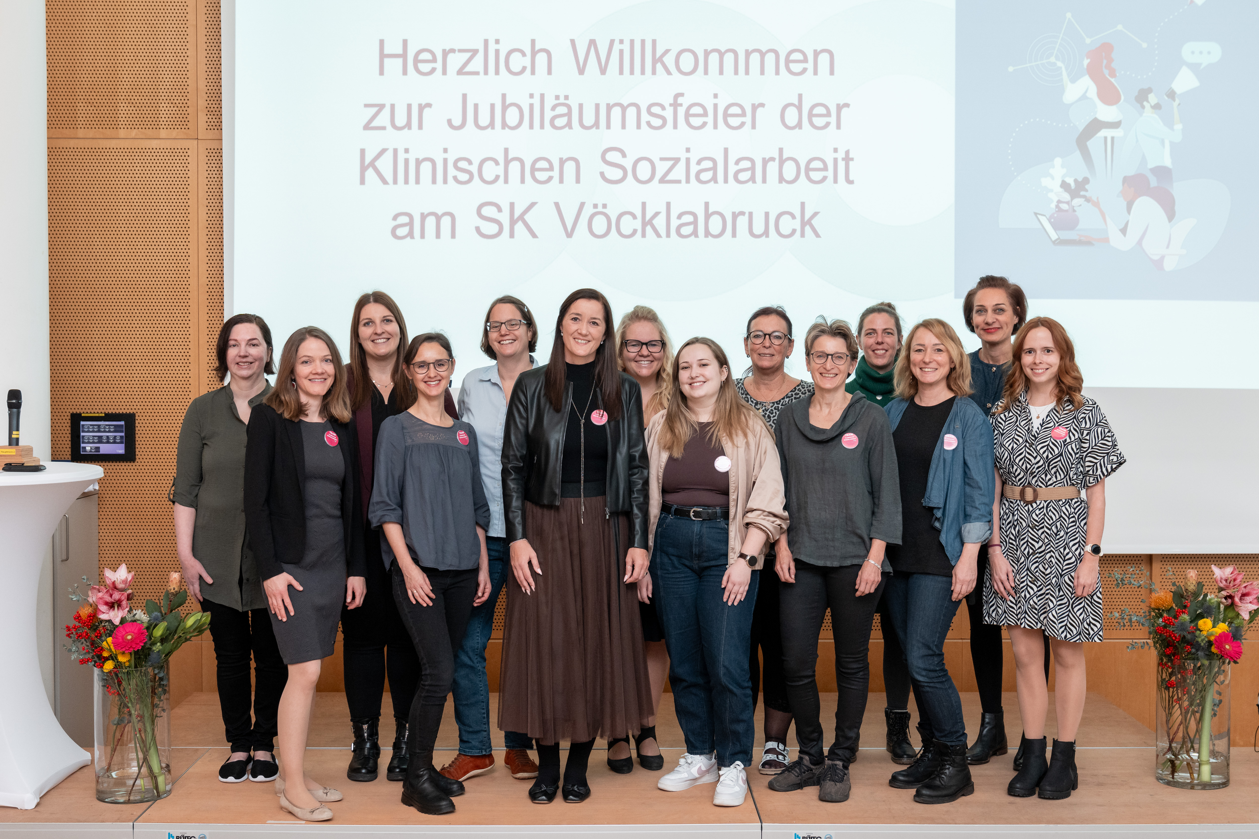 Bildtext: Die Klinische Sozialarbeit im Salzkammergut Klinikum Vöcklabruck unter der Leitung von DSA Maria Fitzinger, (6.v.l.) feiert ihr 25-jähriges Bestehen