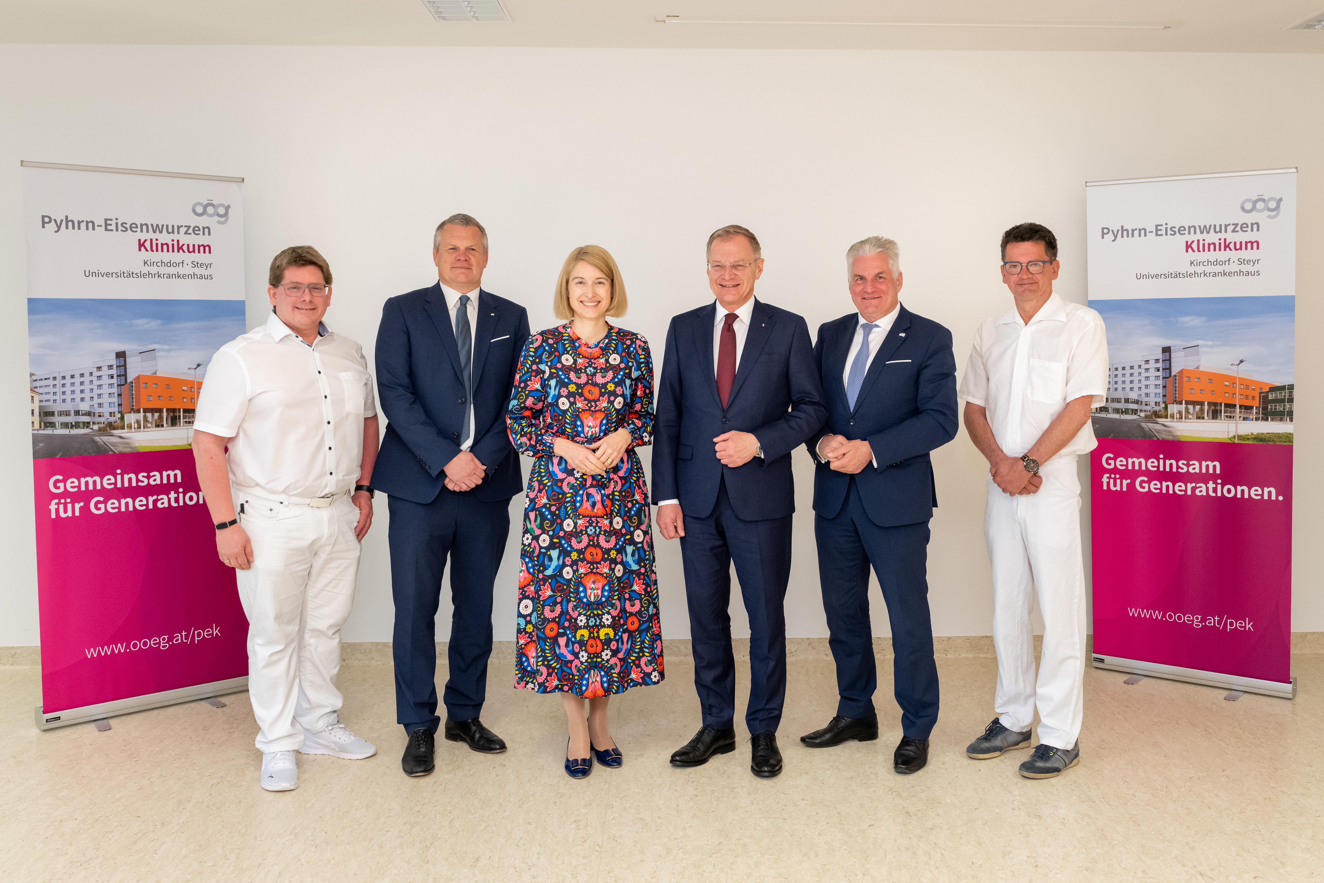 v.l. Mag. DDr. Alexander Lang (Ärztlicher Direktor, Pyhrn-Eisenwurzen Klinikum); Dr. Tilman Königswieser, MPH (Vorsitzender der Geschäftsführung der OÖG); Mag.a Christine Haberlander (LH-Stv.in); Mag. Thomas Stelzer (Landeshauptmann von Oberösterreich);