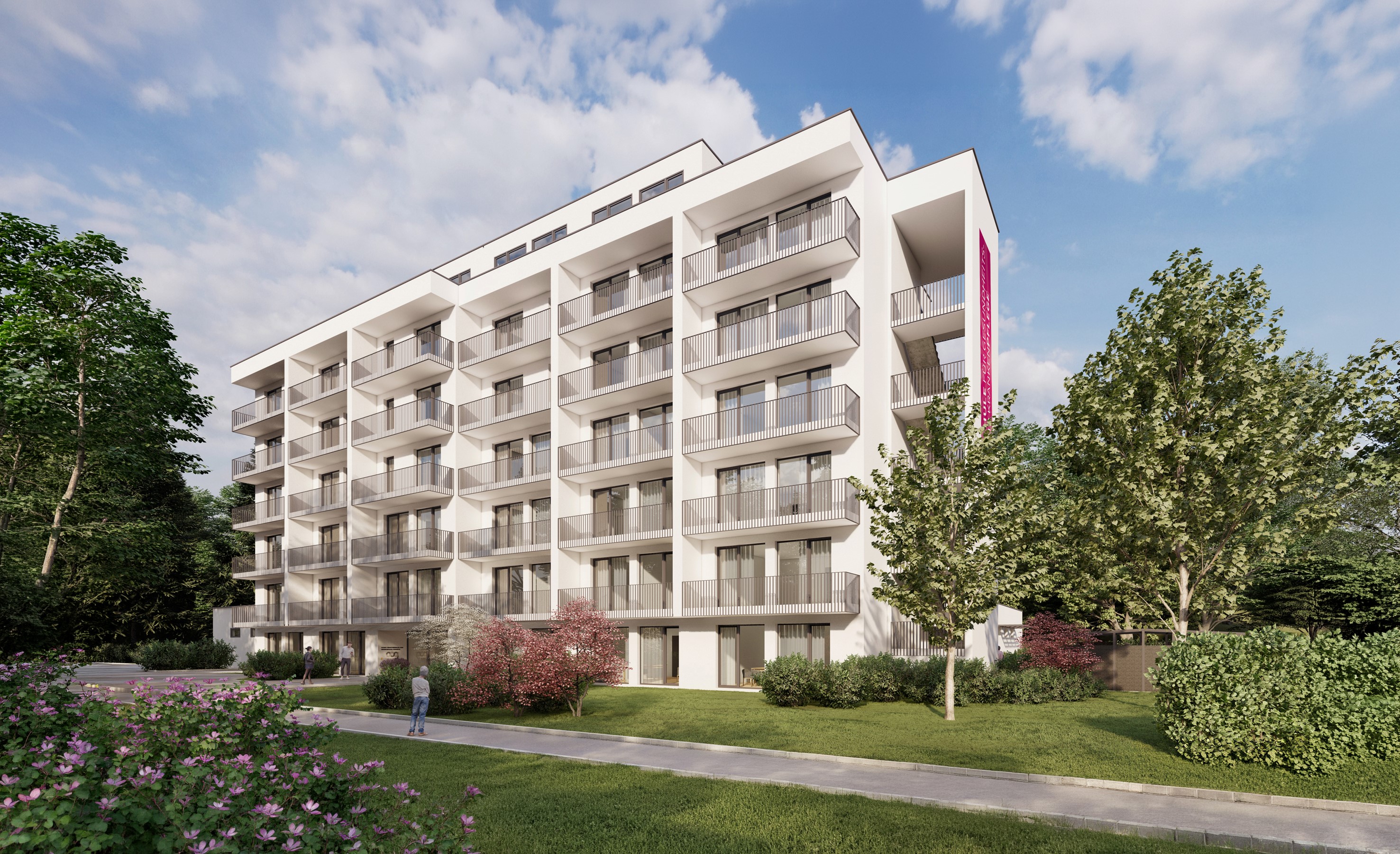 Bildtext 2: Neben den neuen Räumlichkeiten der Schule umfasst das Gebäude auch die Kinderbetreuung des Salzkammergut Klinikums sowie Wohnheimzimmer für Auszubildende und MitarbeiterInnen