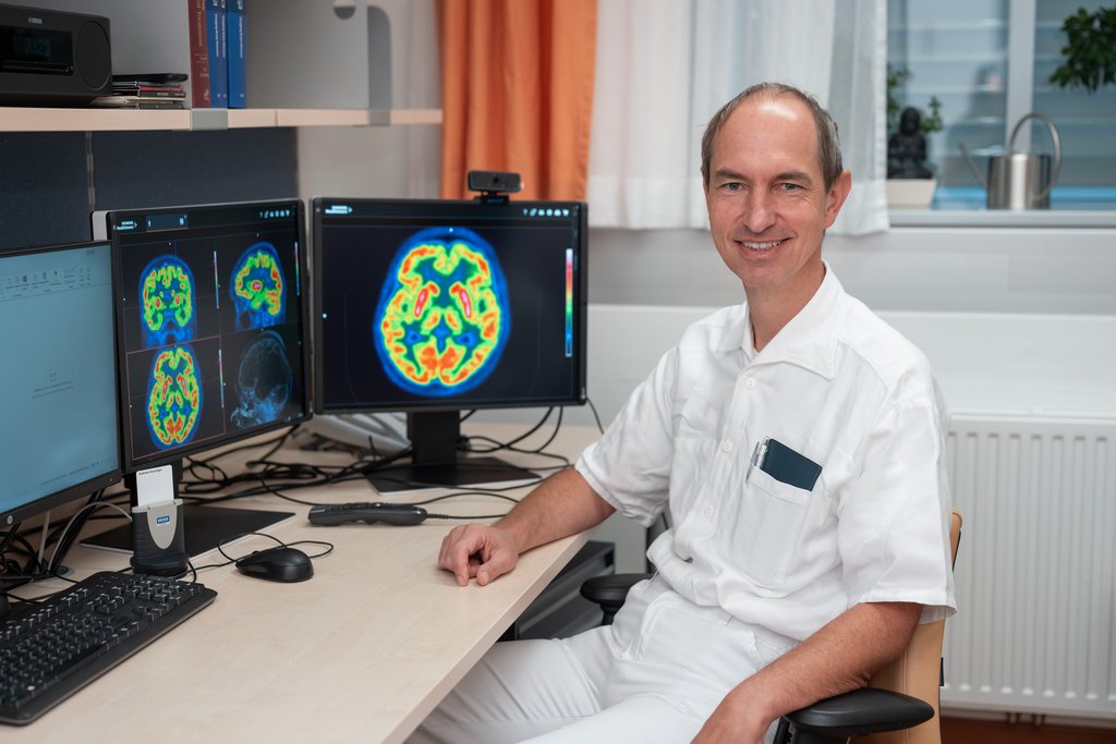 Die häufigste Form einer Demenzerkrankung ist die Alzheimerdemenz, die mithilfe der FDG-PET (Fluordesoxyglucose-Positronen Emissions Tomographie) auf einfache Weise untersucht bzw. nachgewiesen werden kann. „Dabei wird vereinfacht gesagt eine radioaktiv markierte Zuckerlösung in eine Vene gespritzt, wodurch der Glukosestoffwechsel im Gehirn sichtbar gemacht werden kann“, sagt Prim. Dunzinger. Der Vorteil der nuklearmedizinischen Untersuchungsverfahren liegt, neben der hohen Sensibilität, in der unkomplizierten Durchführung. Es sind auch keine unerwünschten Nebenwirkungen zu befürchten, auch nicht durch die verabreichten Radiopharmaka: „Wir verwenden in der Nuklearmedizin Substanzen mit einer sehr geringen Radioaktivität, die nach kurzer Zeit den Körper wieder verlassen“, erklärt Prim. Andreas Dunzinger.